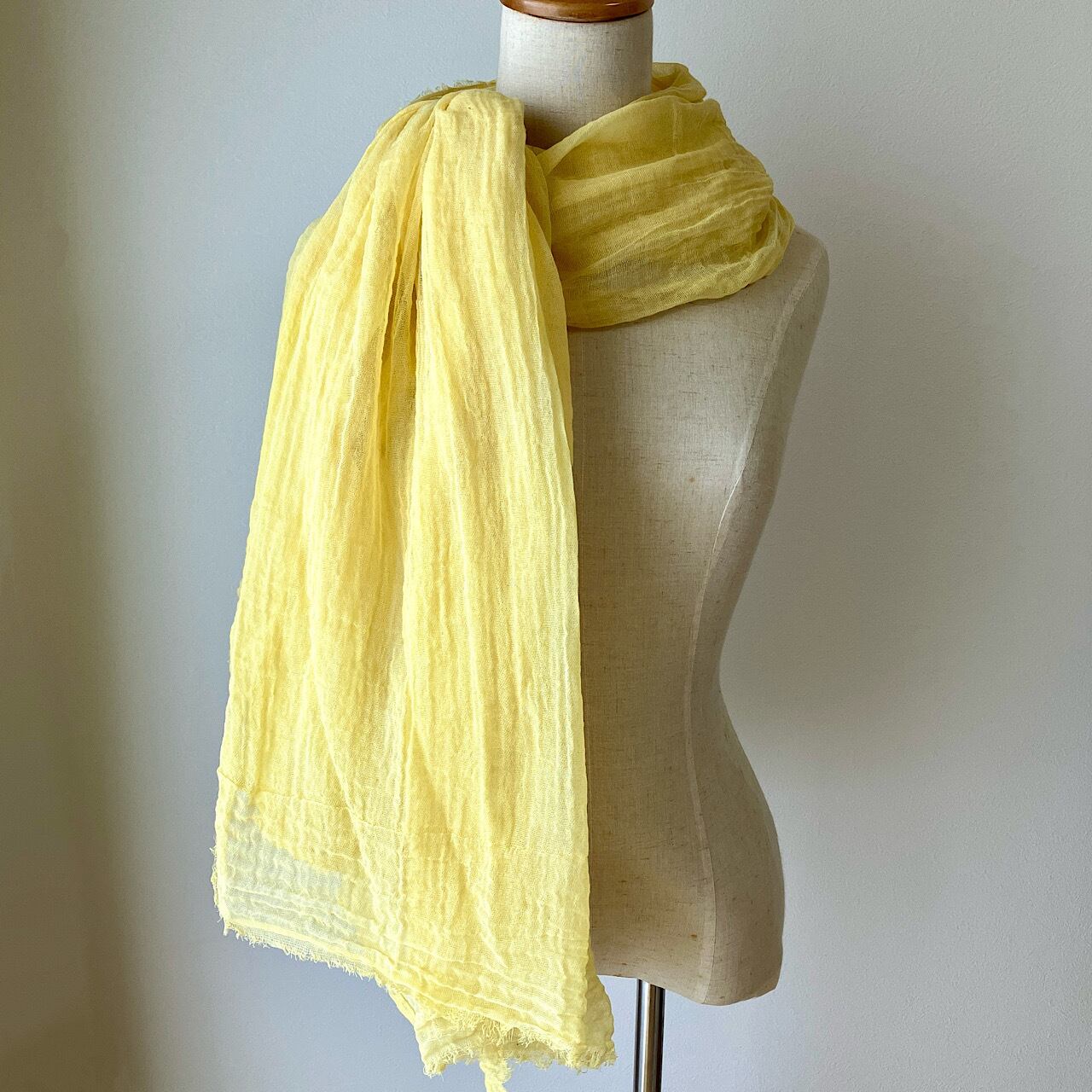 育てましたマリーゴールドの花でオーガニックコットンストールをお染めしました。