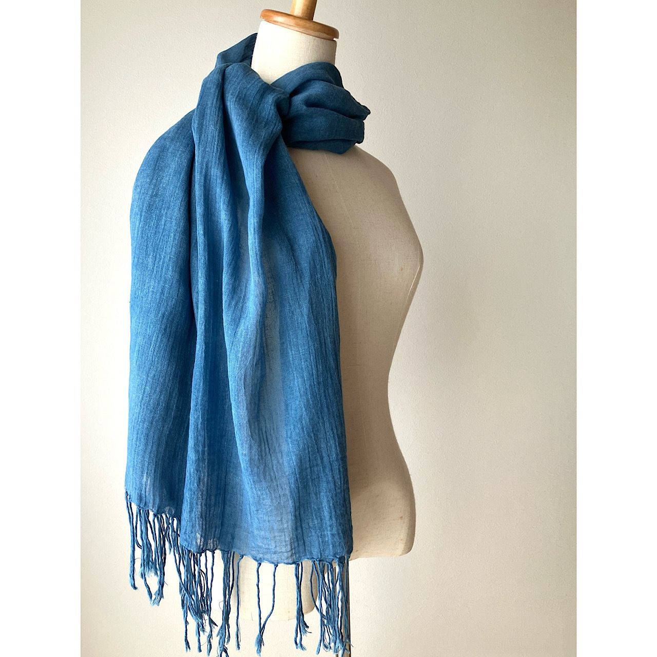 オーガニックコットンのストールを藍の乾燥葉にて染めました